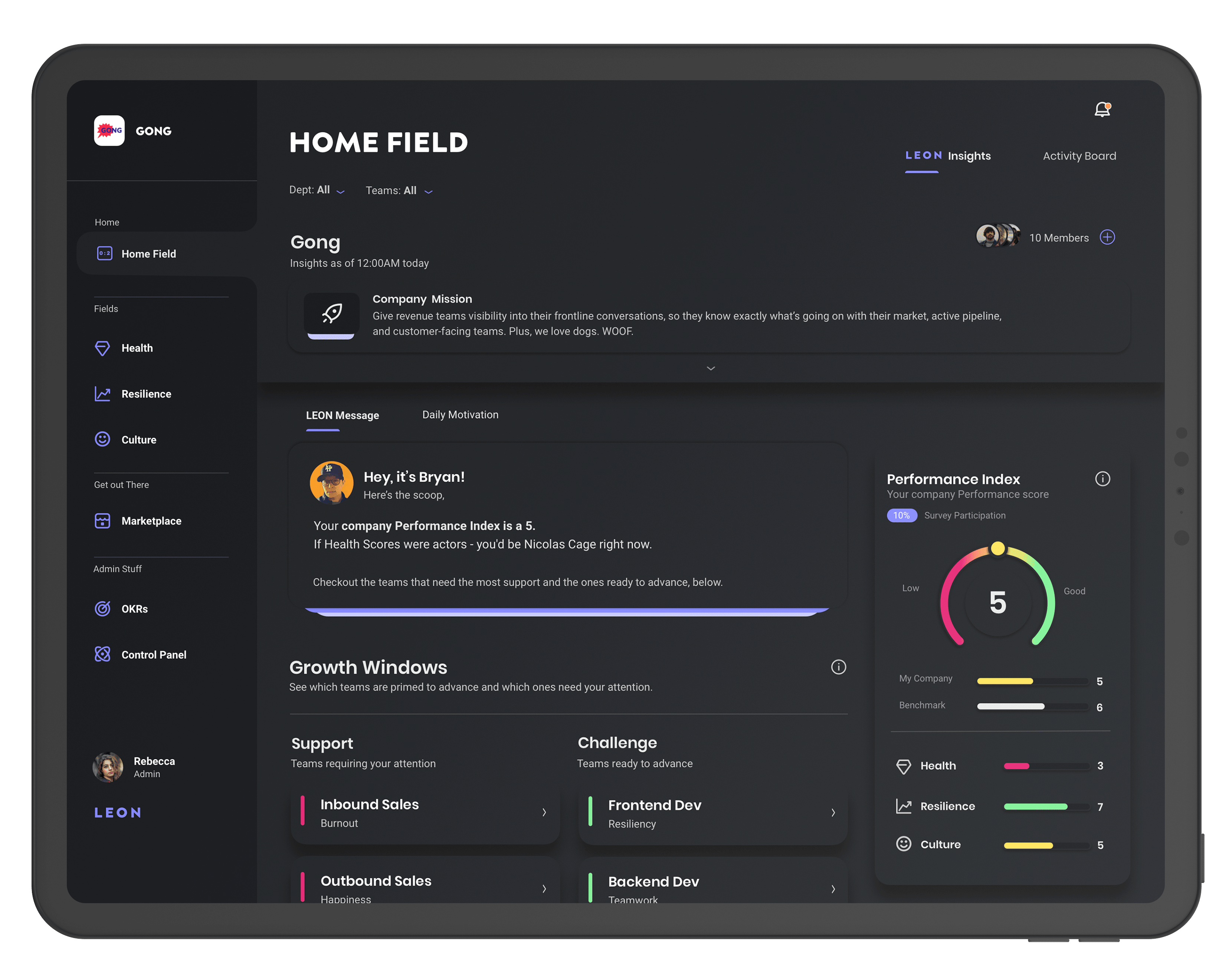And now, with the combined power of The Leon Performance Index, Growth Windows, and Playbooks you can gather insights into employee readiness, understand the exact teams which are in need of proactive support, and most importantly, access to real-time solutions for your leaders and their teams.