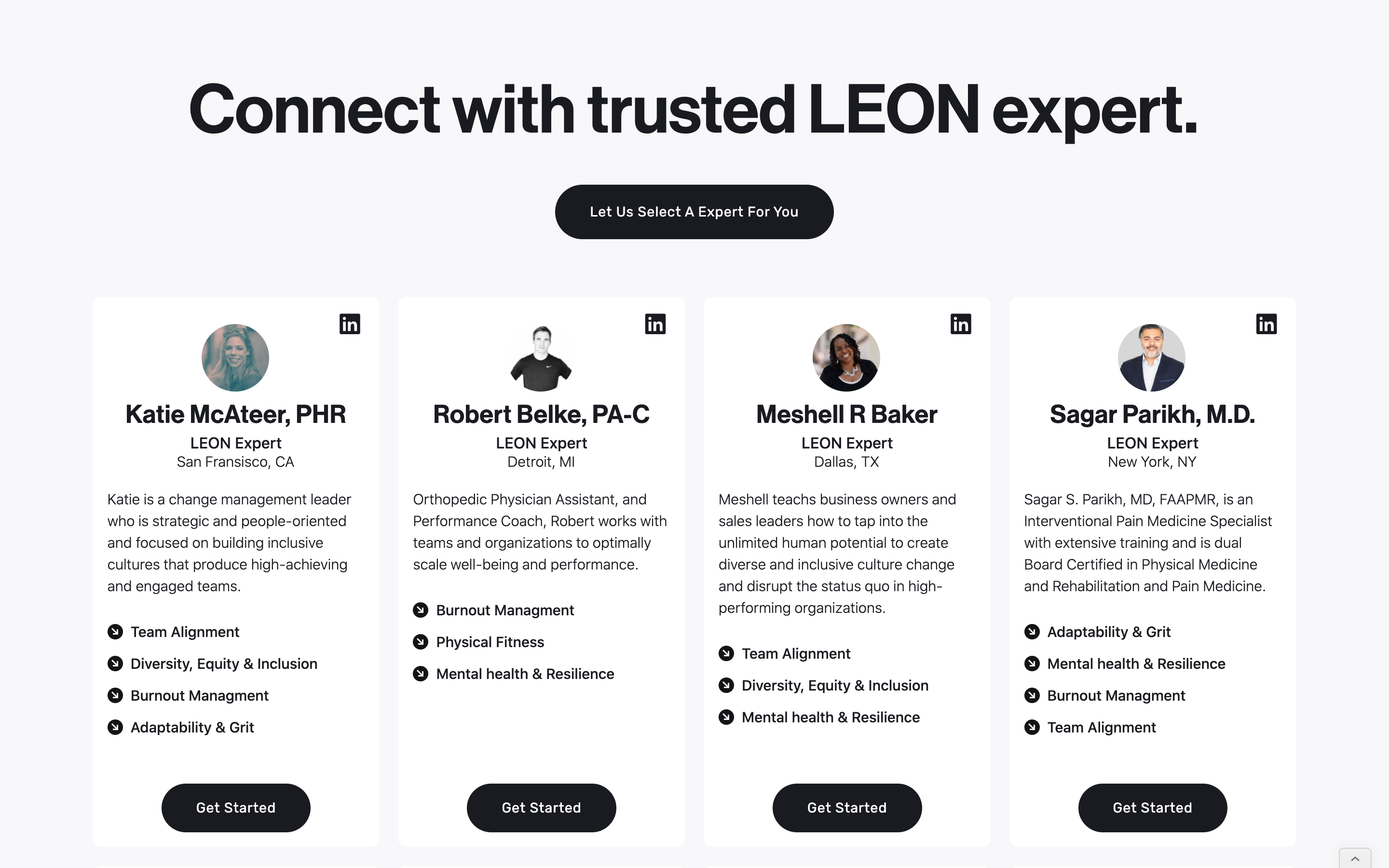 LEON Experts are performance managers, mental health experts, and well-being leaders who provide services to SMB, mid-market, and enterprise customers using the LEON Platform.