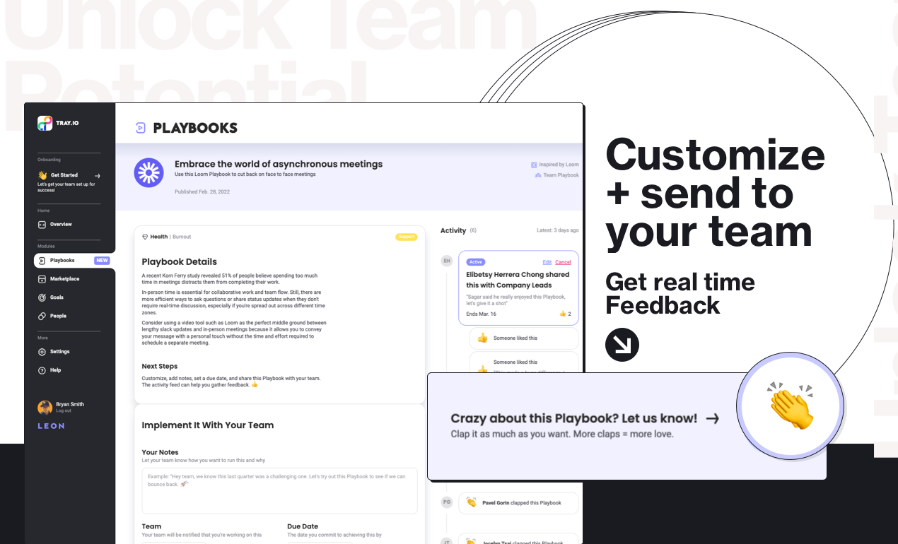 From manager Playbooks, you run to improve yourself to team Playbooks designed to super-power your people; Playbook feedback is a new way to ensure your people know they have a seat at the table. A new way to improve the future of work - asynchronously.