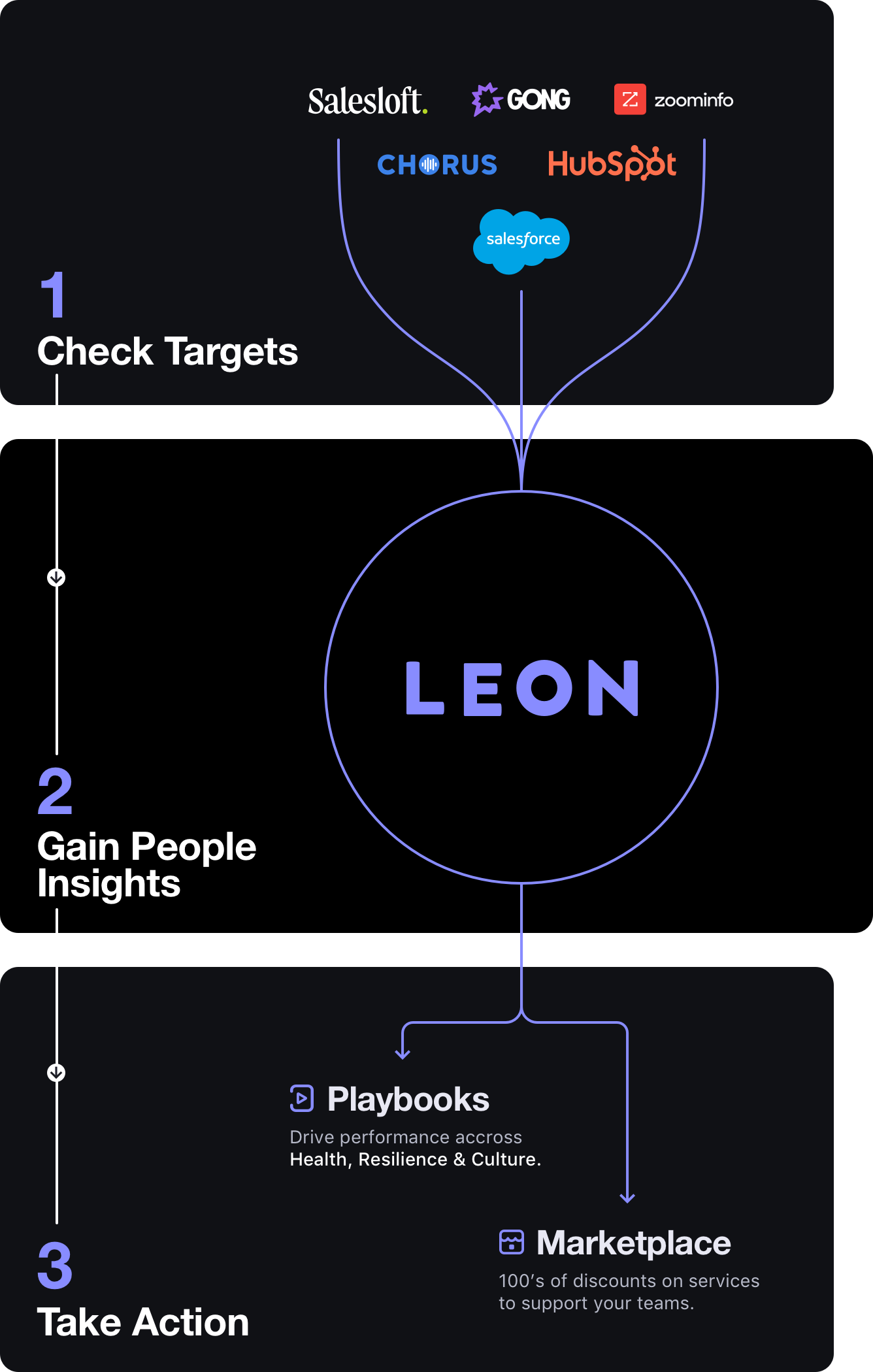 Using a mixture of surveys and CRM integrations, LEON helps you understand which teams are primed to perform.
