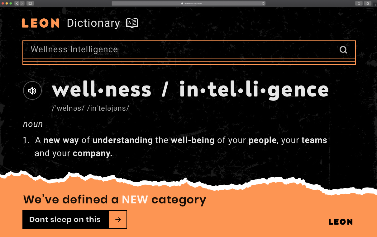 Our mission at LEON is to create humankind’s healthiest and happiest generation of employees. Wellness Intelligence is a new way to drive that mission.